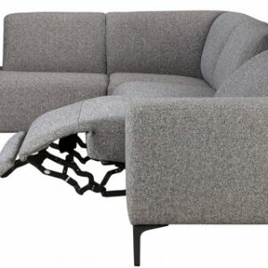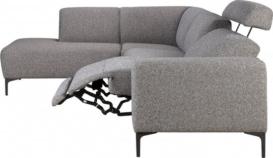 Hoekbank Zeeland heeft een ruim zitgedeelte met elektrische relaxfunctie. De bediening hiervan zit netjes weggewerkt tussen het zitkussen en de armleuning in. In de relaxstand kantelt de rugleuning naar achteren en komt de voetensteun omhoog. In combinatie met de handmatig in hoogte verstelbare hoofdsteun, vind je jouw meest comfortabele stand om een film te kijken of een boek te lezen.